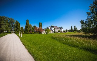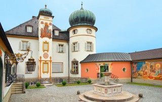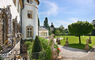 Im zweiten Obergeschoss des Schlosses haben wir zwei ganz besondere Übernachtungsmöglichkeiten. Im linken und rechten Turm befinden sich die runden Turmzimmer, mit einem Doppelbett und wunderschönen Rundblick auf die Parklandschaft des Schlosses und die Alpen. Das Zimmer ist mit einem schönen Bad ausgestattet sowie mit Fernseher, Telefon, Internet und einer Minibar. Auf Wunsch kann ein Frühstück dazugebucht werden.